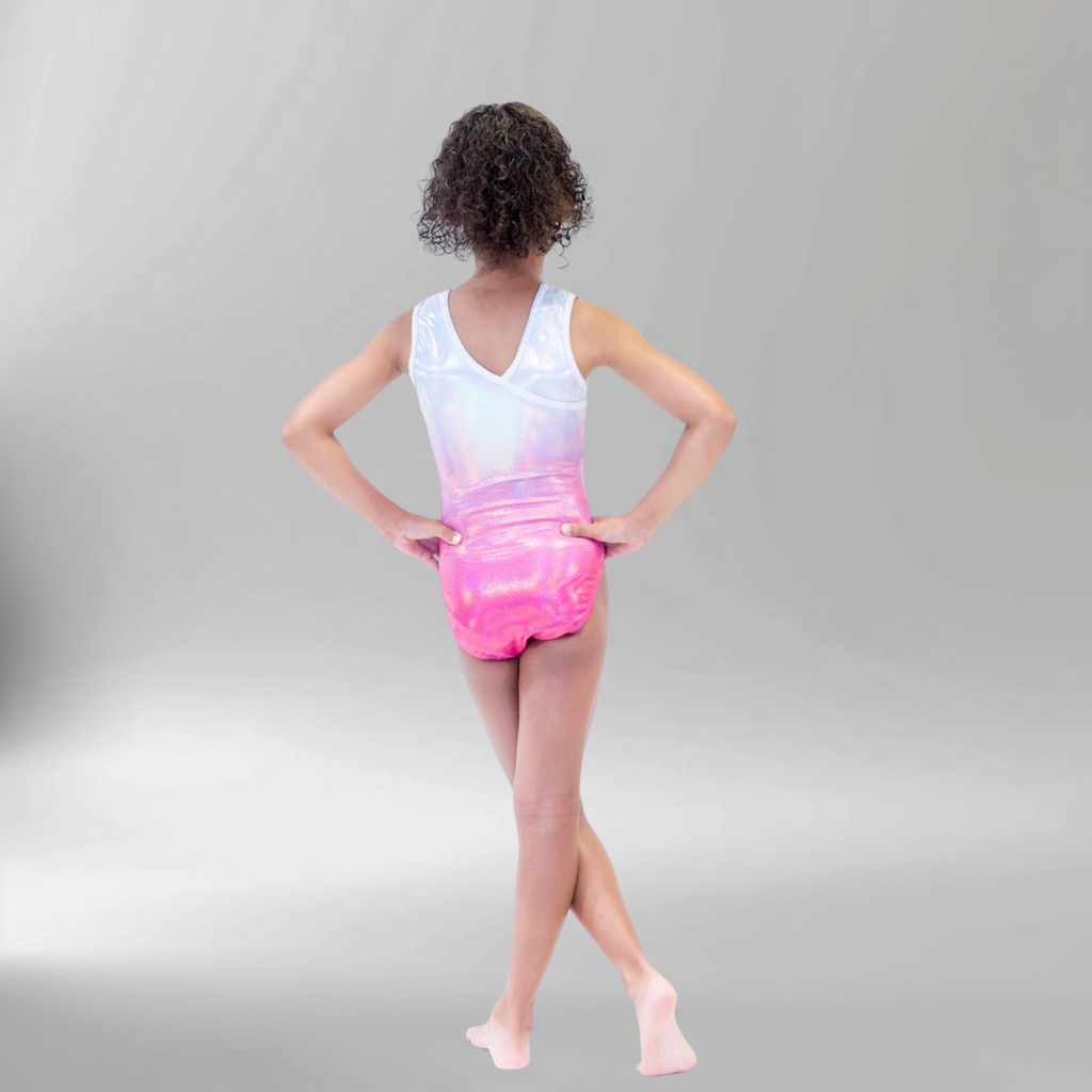 GES Sparkling Pink creates a stylish and vibrant leotard style, ideal for training in the gym. The gradient from shiny white to lively pink adds some interesting contrast to the design. The shiny diamonds sprinkled across the front of the leotard on top create a more detailed look.